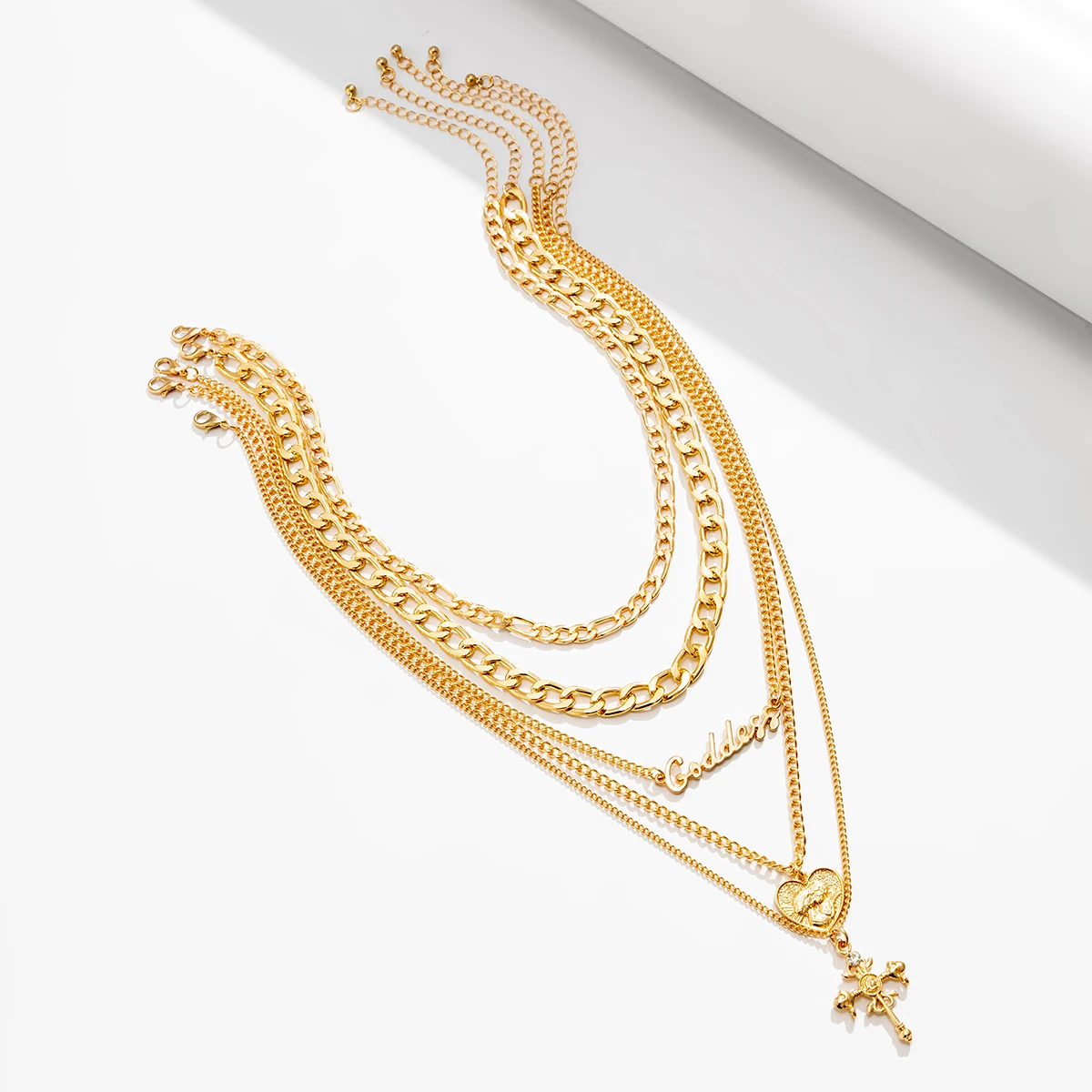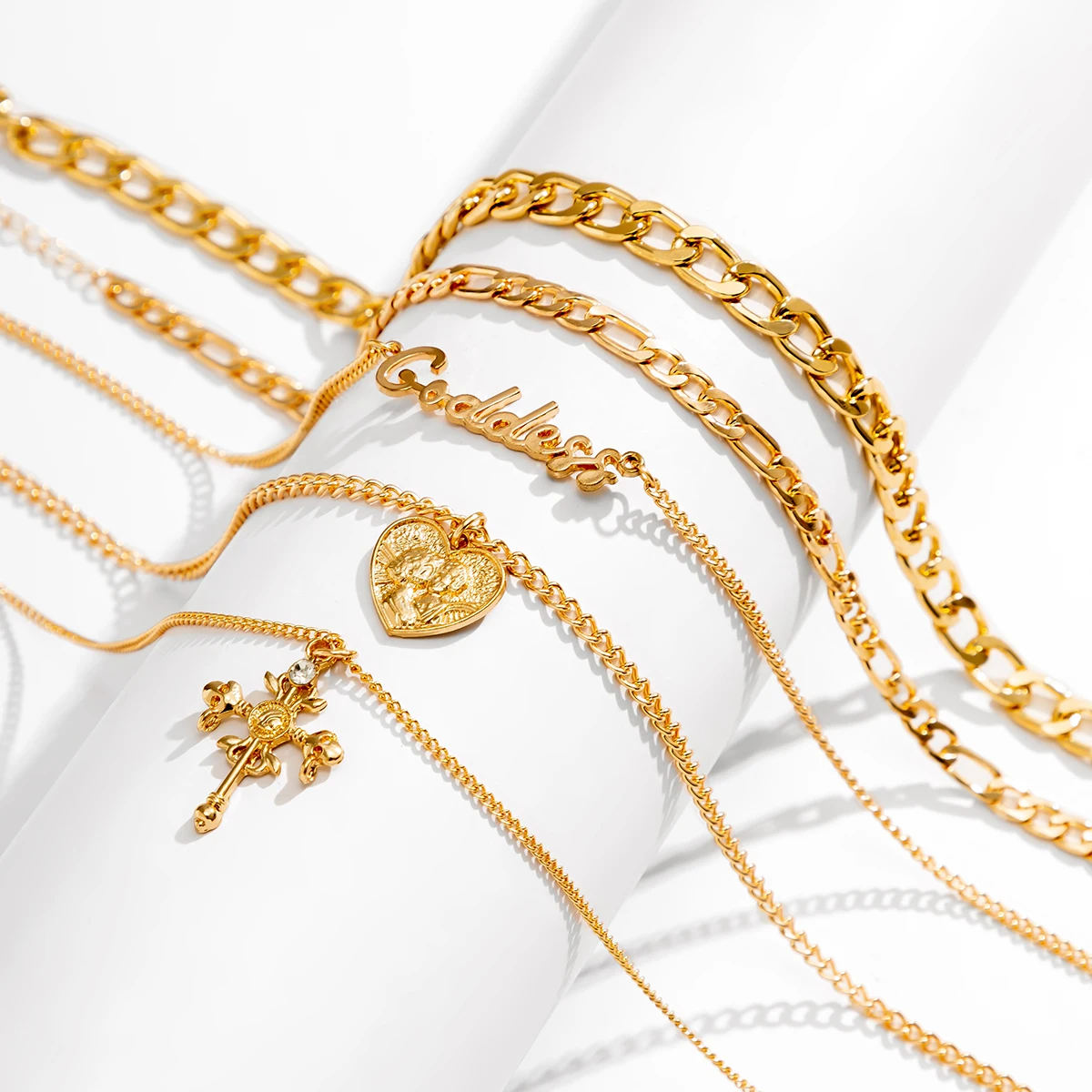 5Pc/Set Vintage Peach Love Heart Cross Jesus Pendant Choker Necklace for Women Multilayer Chain Grunge Jewelry Steampunk Gift