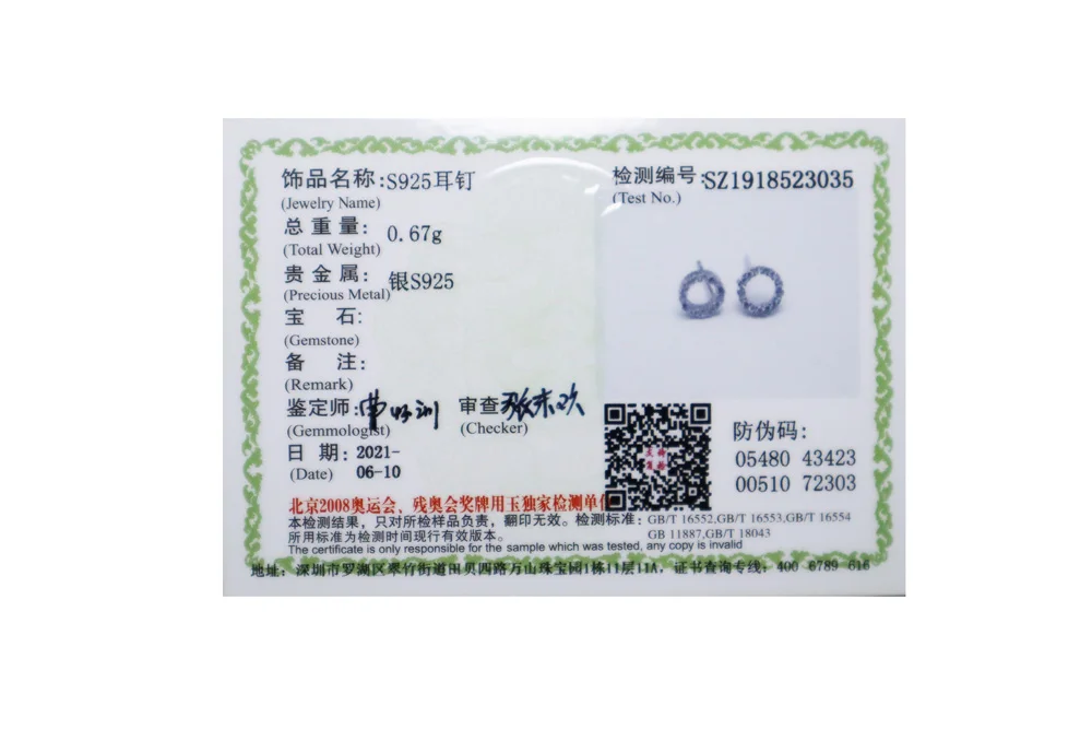 Spot check test certificate (for display only)
